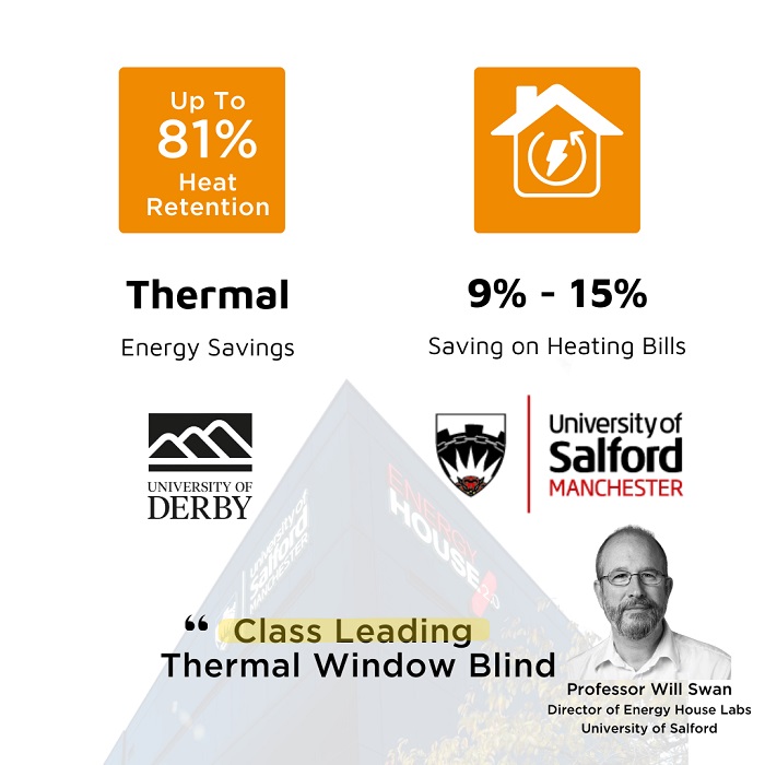 The Blind Screen™ system helps to retain up to 81% of heat, whilst helping to save between 9% to 15% on heating bills, and as energy prices are on the rise again this is a very good thing. Blind Screen™ is a class leading thermal blind, one of the most thermally efficient blinds on the market. Whether you're looking to increase energy efficiency, protect your space from temperature fluctuations, or reduce your carbon footprint, Blind Screen™ delivers a solution that not only meets but exceeds expectations.