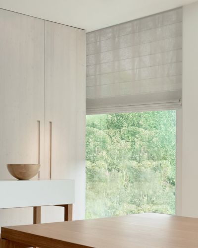 Motorised Roman blinds eliminate dangling cords or chains, creating a safer home for children and pets while maintaining a clean, modern look. Beyond safety, they offer effortless convenience with smart scheduling, letting you control when your blinds open and close automatically. This adds peace of mind and helps create a calmer, more comfortable living environment.